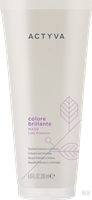Actyva Colore Brillante okrepi sijaj, obstojnost in intenzivnost barve. Formula ščiti pigmente pred zunanjimi vplivi, zapira povrhnjico, hkrati pa deluje negovalno, zaradi česar so lasje mehki, zdravi in vitalni, lesk pa živahen in dolgotrajen.